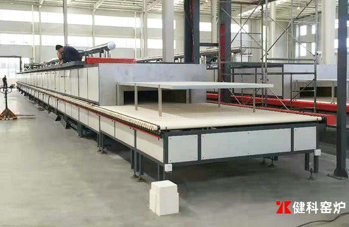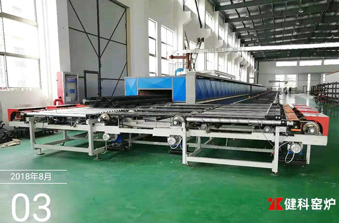 輥道窯的燃燒室在輥子的下方,用壓縮空氣霧化重油、柴油、煤油等燃料進(jìn)行燃燒。也有用煤氣發(fā)生爐所產(chǎn)煤氣進(jìn)行燃燒的,比較大型的陶瓷廠大都采用雙段冷煤氣站,使用冷靜煤氣進(jìn)行燃燒,產(chǎn)生高溫。燃燒室與輥道之間,有耐火材料隔離,火焰不直接接觸被燒制的產(chǎn)品。相對來說,煤氣發(fā)生爐配套輥道窯燃燒比重油、柴油等成本低,比直接燃煤效率高環(huán)保達(dá)標(biāo)。使用重油為燃料時,為防止煙氣污染制品,要采取隔焰或半隔焰形式。電熱時,為保護(hù)發(fā)熱體或使溫度更均勻,也需將發(fā)熱體和制品隔開。